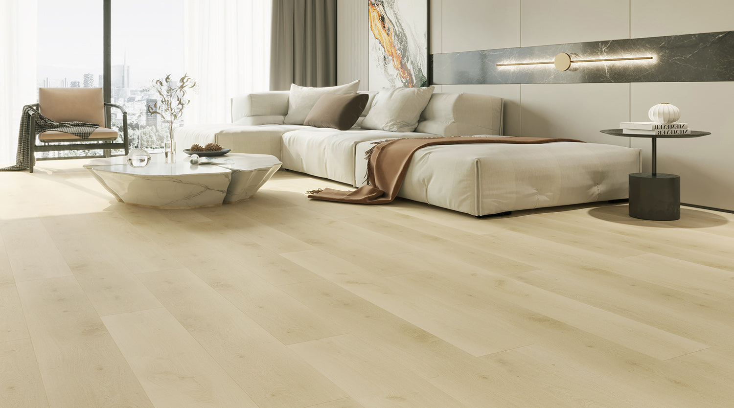 Opus Floors Exposition Max Baret Oak Laminate Flooring ffers timeless beauty with its rich, mid-brown oak visual and hand-embossed finish. Its strong HDF core, and 5G click system, it supports open-concept layouts with seamless cohesion. Backed by water and scratch-resistant qualities, and commercial-grade durability, it's a low-maintenance, high-impact floor choice crafted to Opus quality standards.