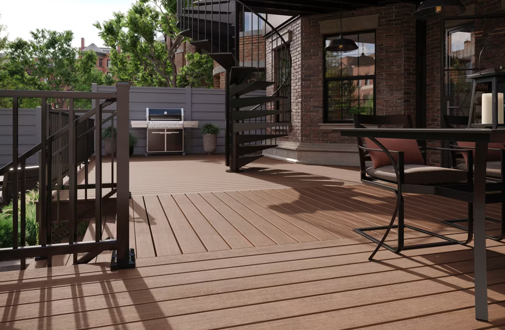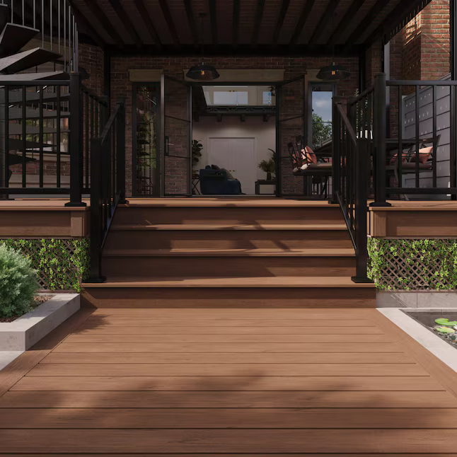 Trex Select Whiskey Barrel Fascia presents a rich, warm brown shade inspired by aged oak, with subtle streaking that adds depth and character. It brings a bold, rustic sophistication to any deck. Engineered with SunComfortable technology, it reflects heat to help keep the surface up to 35°F cooler, while its durable shell resists fading, staining, mold, and scratches. Whiskey Barrel is also available in 1 x 12 x 12 ft. size board.
