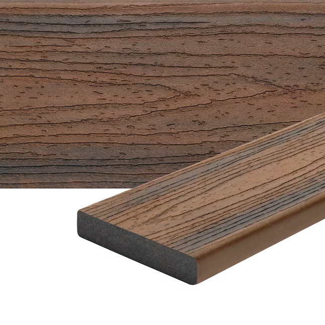 Trex Transcend Spiced Rum Decking Board has a burnt umber with onyx black lowlights, which resembles tropical ipe. Its true-to-nature vibrancy and realistic grain pattern adds both texture and elegance to any deck. Whether you're looking to create a traditional or contemporary look, Spiced Rum seamlessly complements a wide range of outdoor styles. Its durable surface can withstand the elements without requiring the constant upkeep of real wood. Spiced Rum is also available in 12 ft. and 16 ft. squared edge board, 2 inch height squared edge board, and as a grooved edge board.